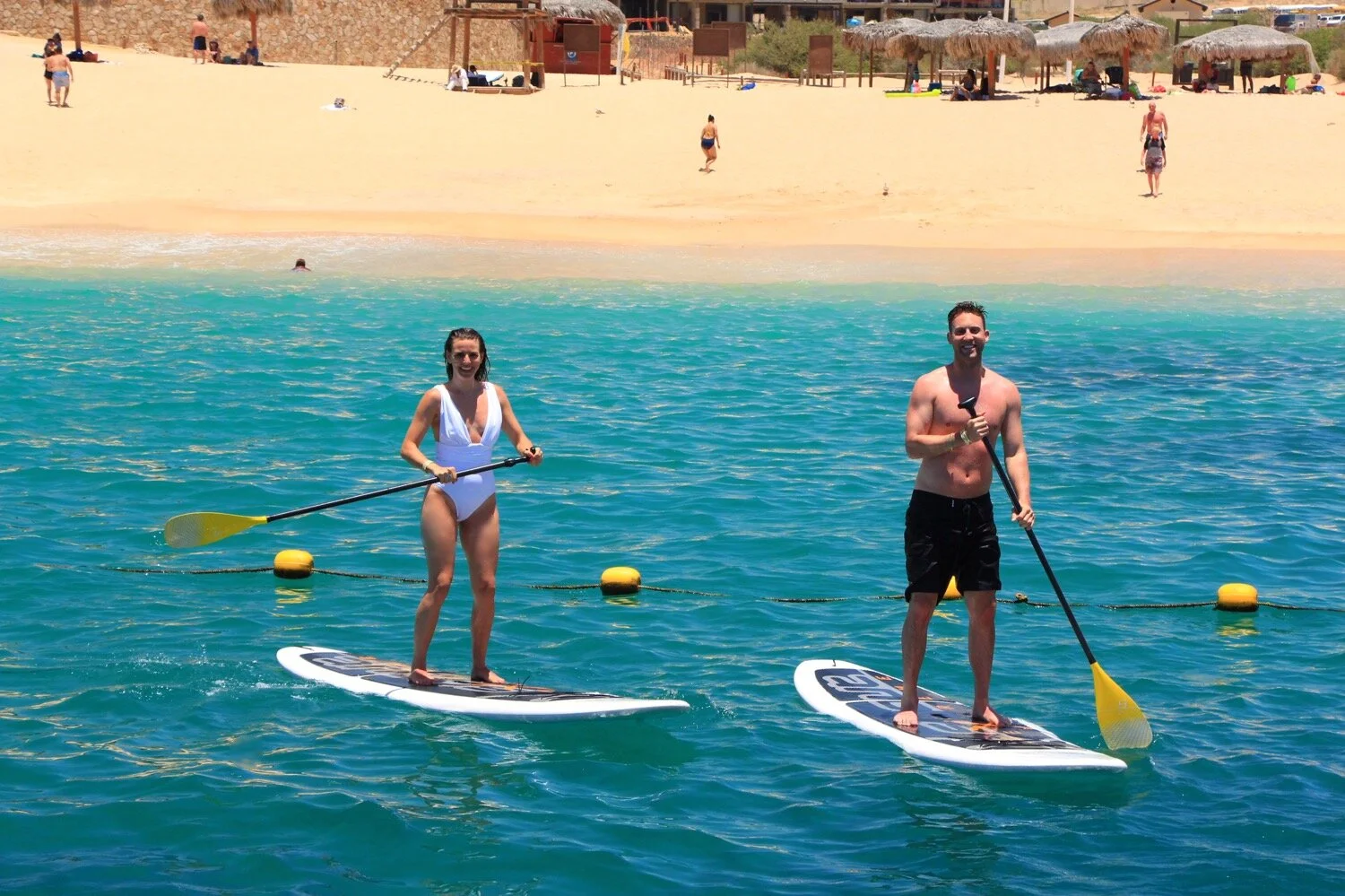 Cabo has an array of excursions to offer, from Jungle cruises (check), to sailing (check) and everything in between. One of our favorite adventures took us to a quiet cove for ocean paddle boarding!